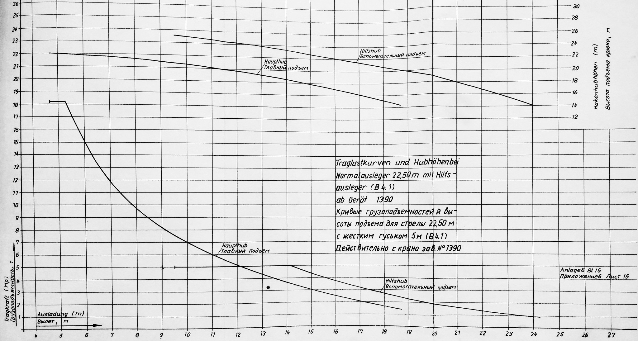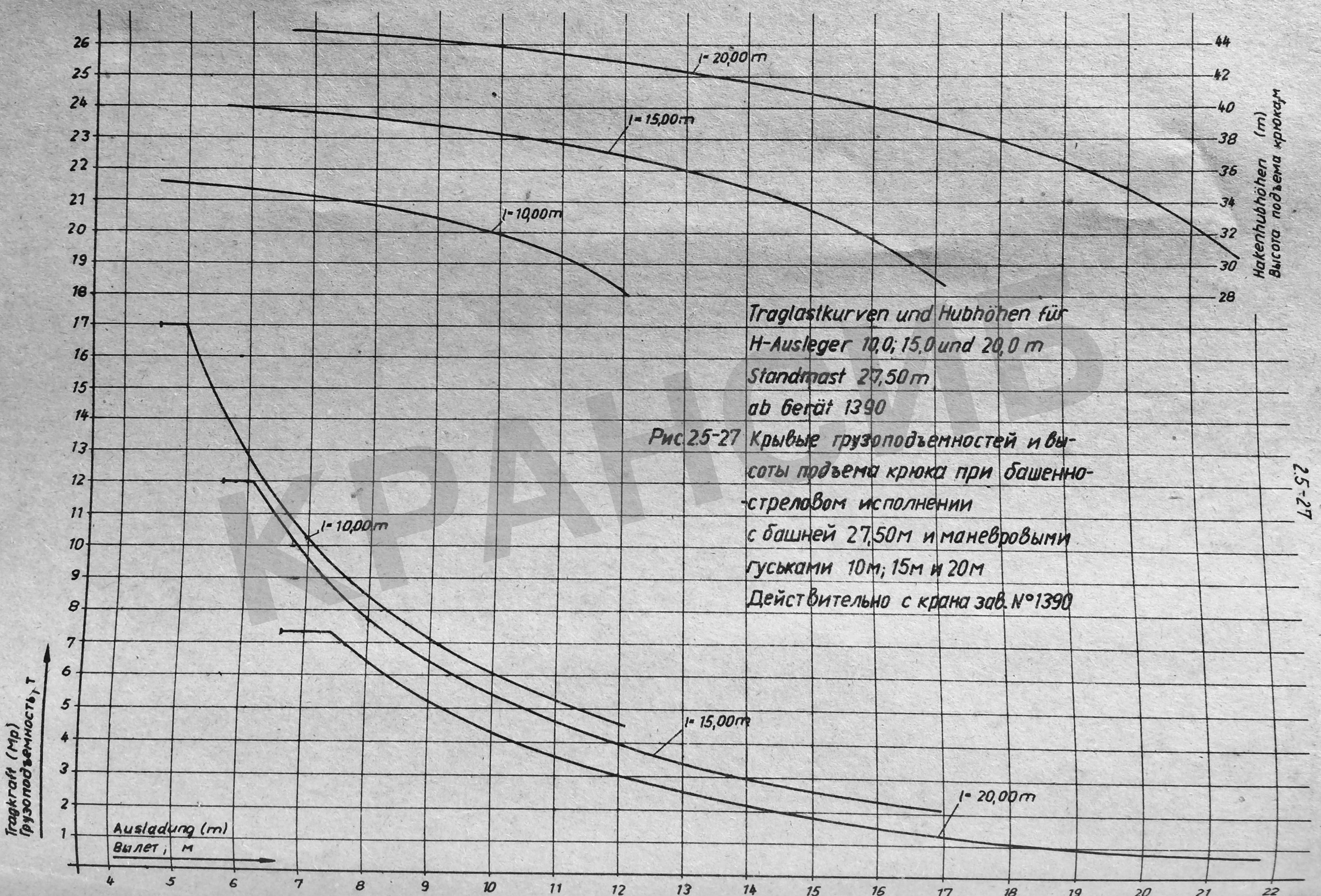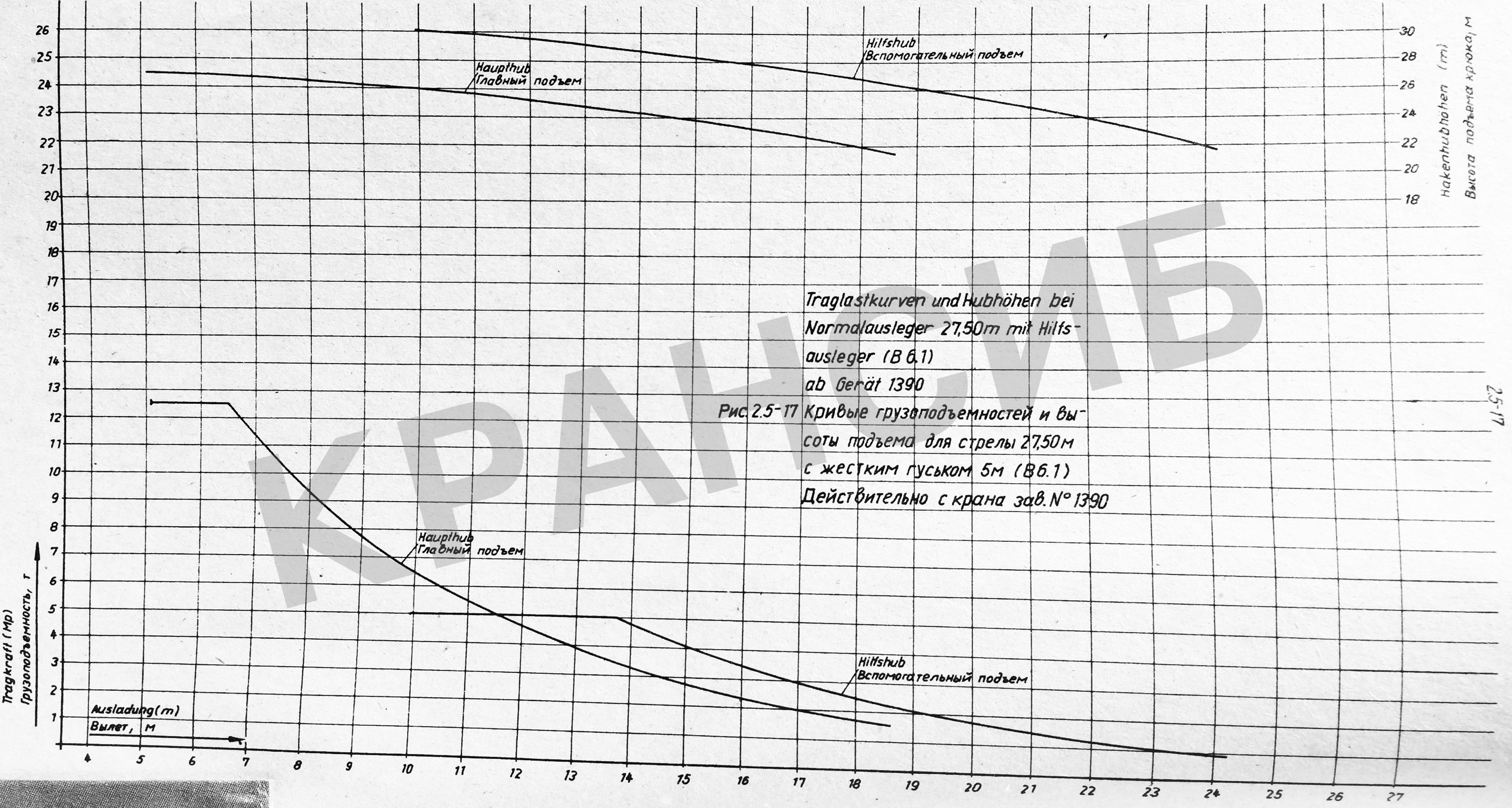 Стреловое исполнение со стрелами 22.5м и 27.5м с грузоподъёмностью до 12 тонн и жёсткий гусёк для вспомогательного подъёма г/п до 5 тонн